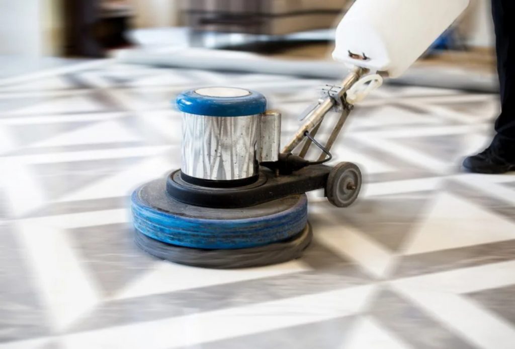 Nous utilisons une monobrosse pour appliquer le produit de cristallisation sur la surface en marbre. Cet appareil est équipé d’un disque en paille de fer qui permet de répartir le produit uniformément et de frotter la surface avec précision. Nous disposons également d’outils spécifiques pour traiter les coins et les recoins inaccessibles à la monobrosse.