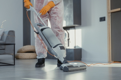 Aspiration et lavage des sols pour éliminer les traces de saleté et poussière.